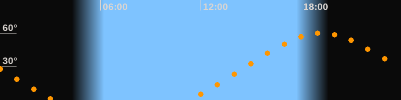 Höchster Stand (Kulmination)19:13 Uhr (h = 60,5°)