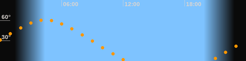 | Untergang | 12:21 Uhr im Nordwesten (αAz = 305,7°) |