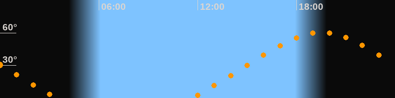 | Höchster Stand (Kulmination) | 19:30 Uhr (h = 60,5°) |