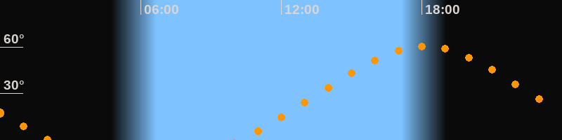 | Höchster Stand (Kulmination) | 18:07 Uhr (h = 60,5°) |