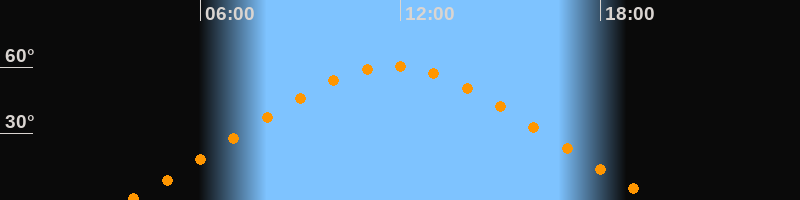 | Höchster Stand (Kulmination) | 11:46 Uhr (h = 60,5°) |