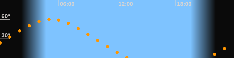 | Höchster Stand (Kulmination) | 05:13 Uhr (h = 60,5°) |