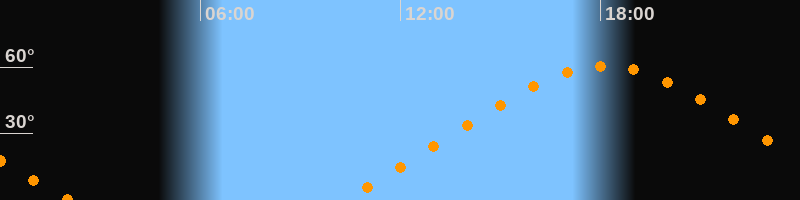 | Höchster Stand (Kulmination) | 18:08 Uhr (h = 60,5°) |