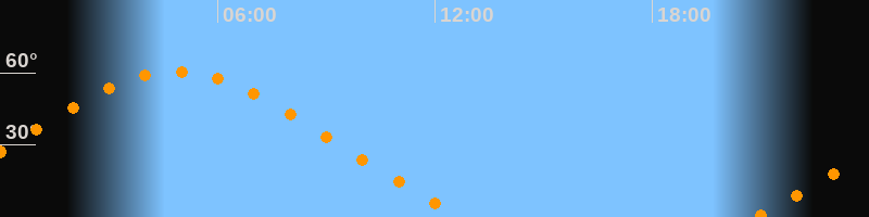 | Untergang | 12:46 Uhr im Nordwesten (αAz = 305,7°) |