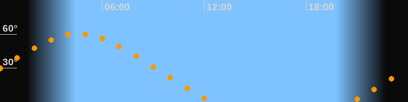 | Untergang | 12:31 Uhr im Nordwesten (αAz = 305,7°) |