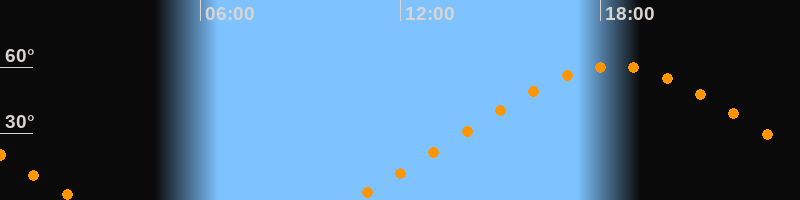 | Höchster Stand (Kulmination) | 18:25 Uhr (h = 60,5°) |