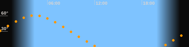 | Untergang | 12:21 Uhr im Nordwesten (αAz = 305,7°) |