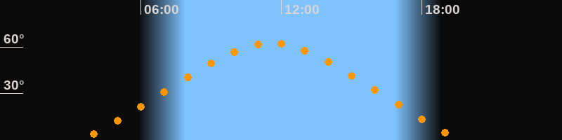 | Höchster Stand (Kulmination) | 11:33 Uhr (h = 62,4°) |