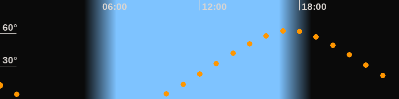 | Höchster Stand (Kulmination) | 17:25 Uhr (h = 62,4°) |