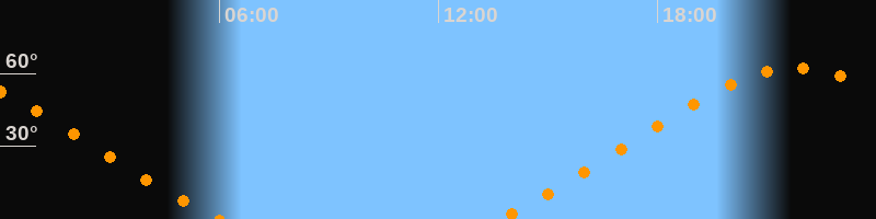 | Untergang | 06:00 Uhr im Nordwesten (αAz = 309,2°) |