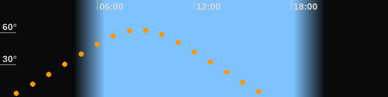 | Höchster Stand (Kulmination) | 08:36 Uhr (h = 62,4°) |