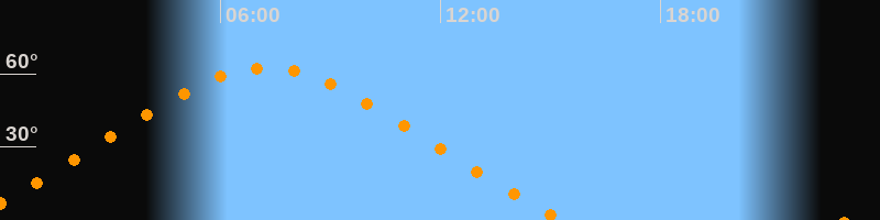 | Höchster Stand (Kulmination) | 07:14 Uhr (h = 62,4°) |