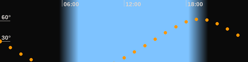 | Höchster Stand (Kulmination) | 19:18 Uhr (h = 62,4°) |