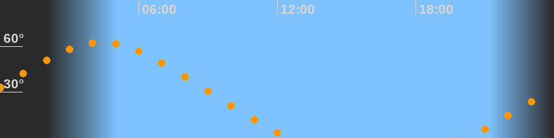 | Untergang | 12:31 Uhr im Nordwesten (αAz = 309,2°) |