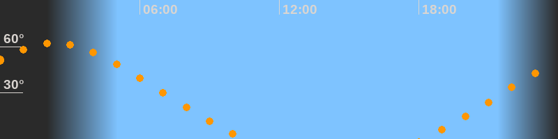 | Untergang | 10:30 Uhr im Nordwesten (αAz = 309,2°) |