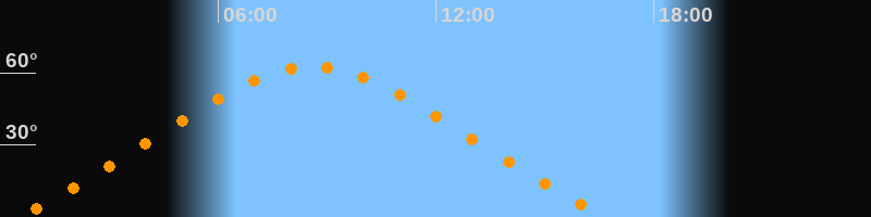 | Höchster Stand (Kulmination) | 08:35 Uhr (h = 62,4°) |