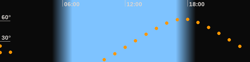| Höchster Stand (Kulmination) | 17:34 Uhr (h = 62,4°) |