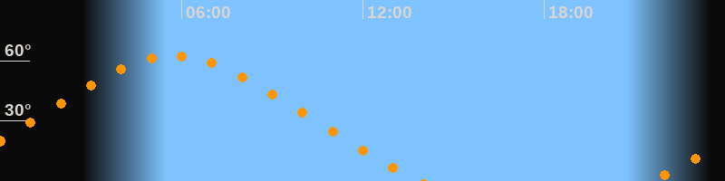| Höchster Stand (Kulmination) | 05:45 Uhr (h = 62,4°) |