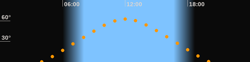 | Höchster Stand (Kulmination) | 12:02 Uhr (h = 62,4°) |