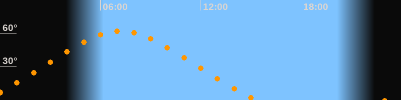 | Höchster Stand (Kulmination) | 07:12 Uhr (h = 62,4°) |