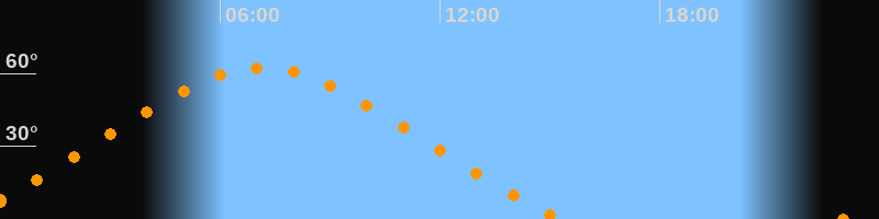 | Höchster Stand (Kulmination) | 07:08 Uhr (h = 62,4°) |