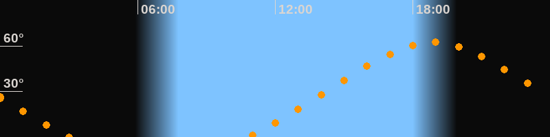 | Höchster Stand (Kulmination) | 18:53 Uhr (h = 62,4°) |