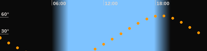 | Höchster Stand (Kulmination) | 18:35 Uhr (h = 62,4°) |