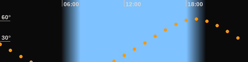 | Höchster Stand (Kulmination) | 18:52 Uhr (h = 62,4°) |
