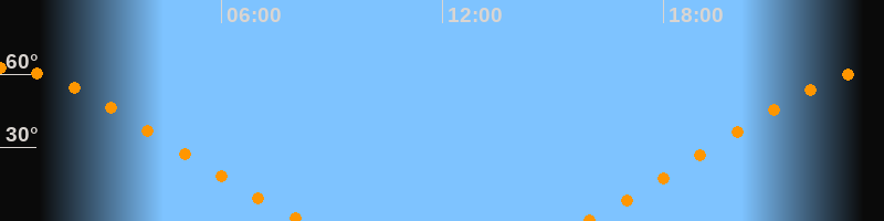 | Höchster Stand (Kulmination) | 00:00 Uhr (h = 62,4°) |