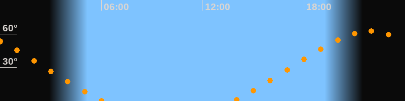 | Aufgang | 13:45 Uhr im Nordosten (αAz = 50,8°) |