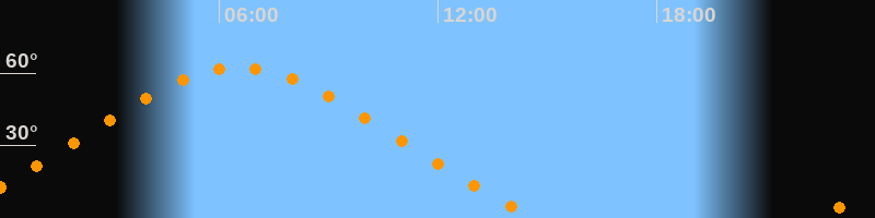 | Höchster Stand (Kulmination) | 06:32 Uhr (h = 62,4°) |