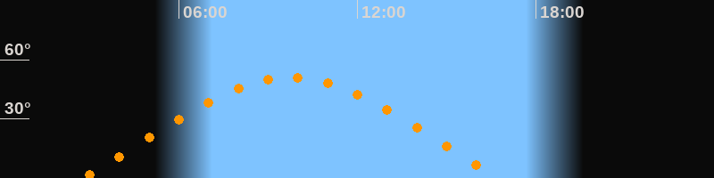 | Höchster Stand (Kulmination) | 09:46 Uhr (h = 51°) |