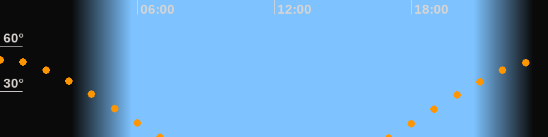 | Höchster Stand (Kulmination) | 23:59 Uhr (h = 51°) |