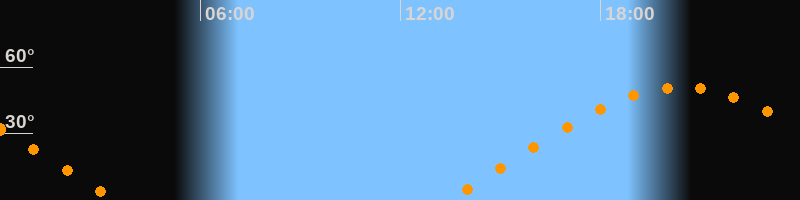 | Aufgang | 13:24 Uhr im Osten (αAz = 70,6°) |