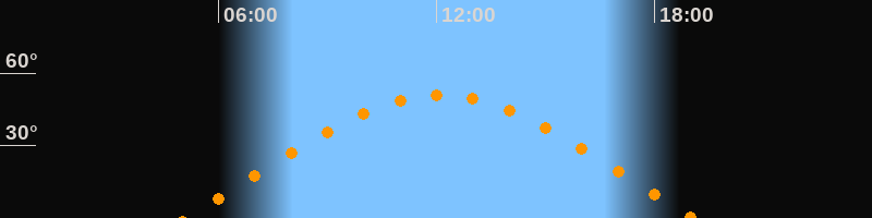 | Höchster Stand (Kulmination) | 12:05 Uhr (h = 51°) |