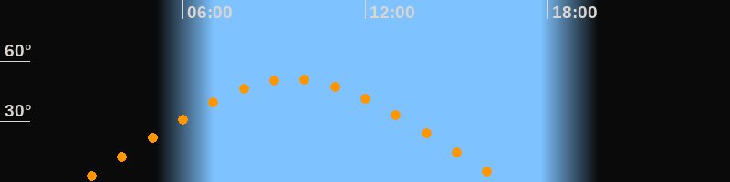 | Höchster Stand (Kulmination) | 09:36 Uhr (h = 51°) |