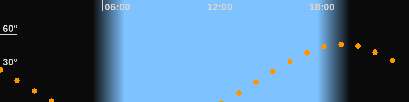 | Aufgang | 13:02 Uhr im Osten (αAz = 70,6°) |