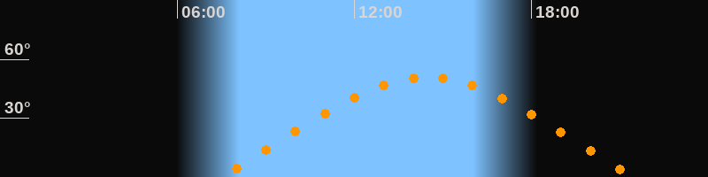 | Höchster Stand (Kulmination) | 14:28 Uhr (h = 51°) |