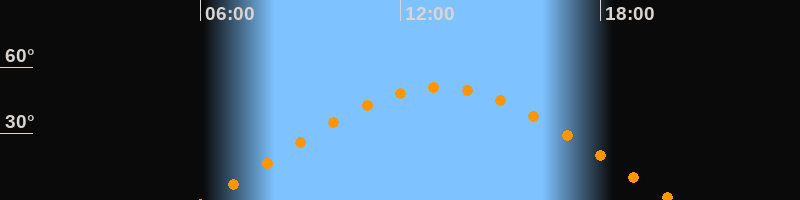 | Höchster Stand (Kulmination) | 13:10 Uhr (h = 51°) |