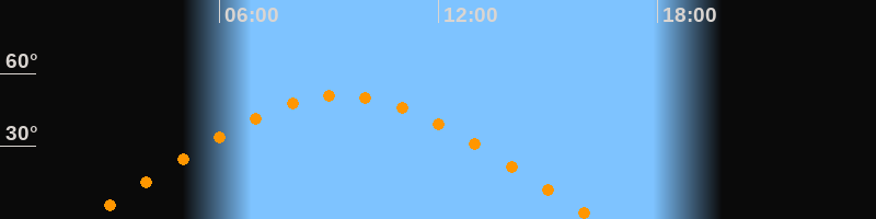 | Höchster Stand (Kulmination) | 09:20 Uhr (h = 51°) |