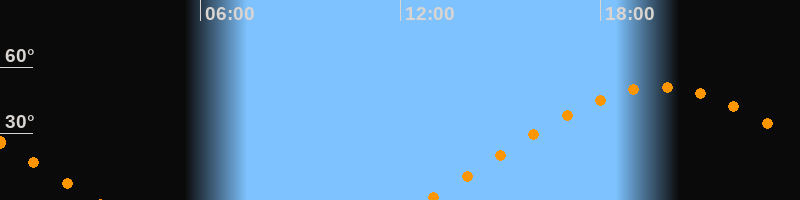 | Aufgang | 12:46 Uhr im Osten (αAz = 70,6°) |