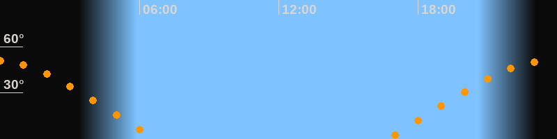 | Aufgang | 16:39 Uhr im Osten (αAz = 70,6°) |