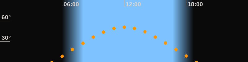 | Höchster Stand (Kulmination) | 12:00 Uhr (h = 51°) |