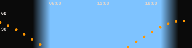 | Aufgang | 15:40 Uhr im Osten (αAz = 70,6°) |