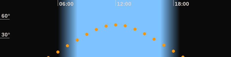 | Höchster Stand (Kulmination) | 12:03 Uhr (h = 51°) |