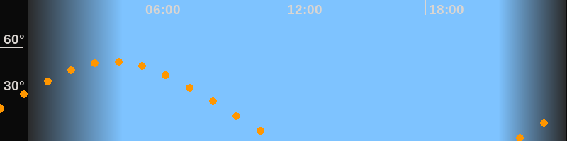 | Aufgang | 21:39 Uhr im Osten (αAz = 70,6°) |