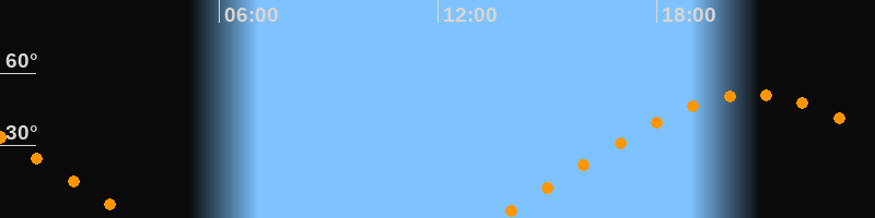 | Aufgang | 13:36 Uhr im Osten (αAz = 70,6°) |