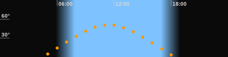 | Höchster Stand (Kulmination) | 11:26 Uhr (h = 51°) |
