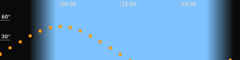| Höchster Stand (Kulmination) | 06:00 Uhr (h = 51°) |