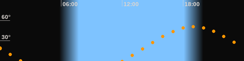 | Aufgang | 11:59 Uhr im Osten (αAz = 70,6°) |